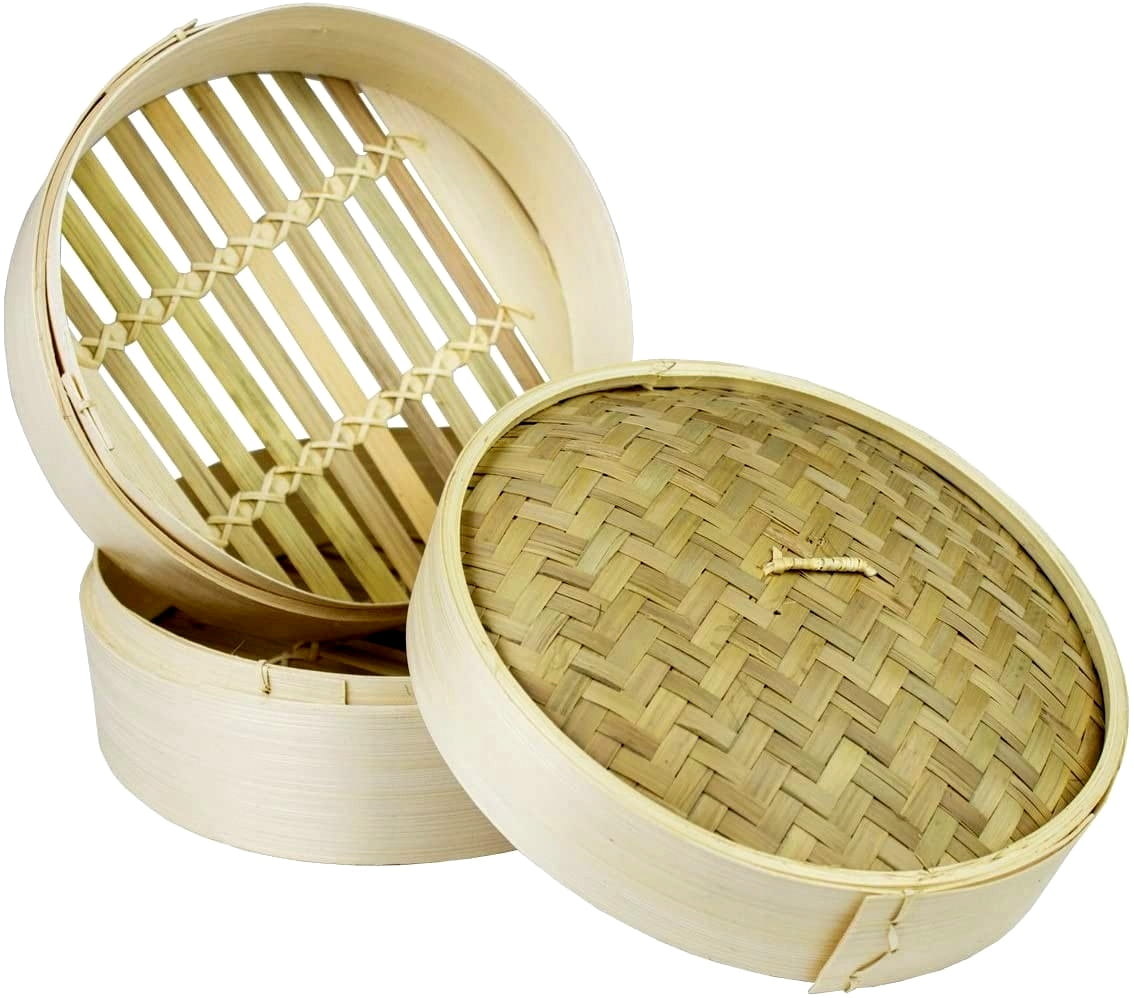 Opis: Chiński parowar parownik kosz bambusowy okrągły koszyk parowy o średnicy 20cm z doma piętrami.