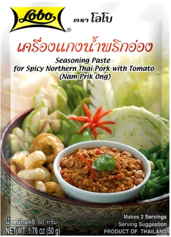 Oryginalna, gotowa mieszanka przypraw do przygotowania jednego z najbardziej znanych dań z północnej Tajlandii – Nam Prik Ong. Łączy w sobie pomidory, chili, czosnek i aromatyczne przyprawy, które nadają potrawie pikantno-słodki smak z pomidorową nutą.