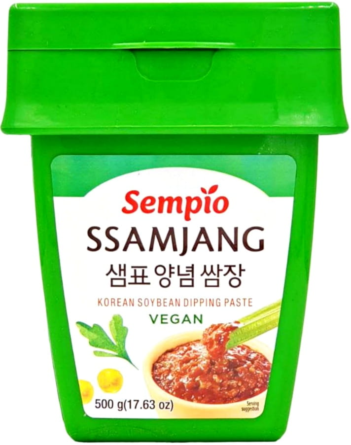 Opis: Pasta ssamjang w opakowaniu 500g koreańskiej firmy Sempio to mieszanka pasty sojowej dwenjang oraz pasty chilli gochujang. W kuchni koreańskiej stosowana w wielu przepisach, od zwyczajnych koreańskich kanapek po dania mięsne, doskonały dressing do sałatek lub dip do warzyw. Ssamjang możne zastąpić popularne produkty takie jak majonez, ketchup lub musztardę.
