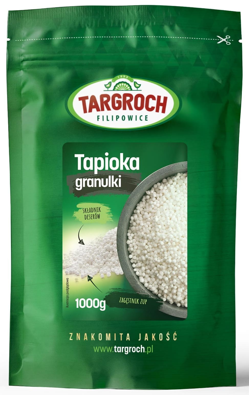 Opis: Perełka z tapioki w opakowaniu 1000g firmy Targroch. W kuchni azjatyckiej wykorzystywana jest przede wszystkim do przygotowania deserów, puddingów oraz napojów. Mała perełka ma średnicę około 2 mm i najczęściej wykorzystuje się ją do deserów. Natomiast większą perełkę do napojów.