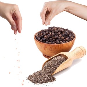 Opis: Pieprz swój ostry smak zawdzięcza piperynie, która gromadzi się głównie w wierzchniej warstwie owocu. Przyprawa ta jest również źródłem białka, tłuszczu, błonnika i minerałów, głównie wapnia, żelaza, magnezu.