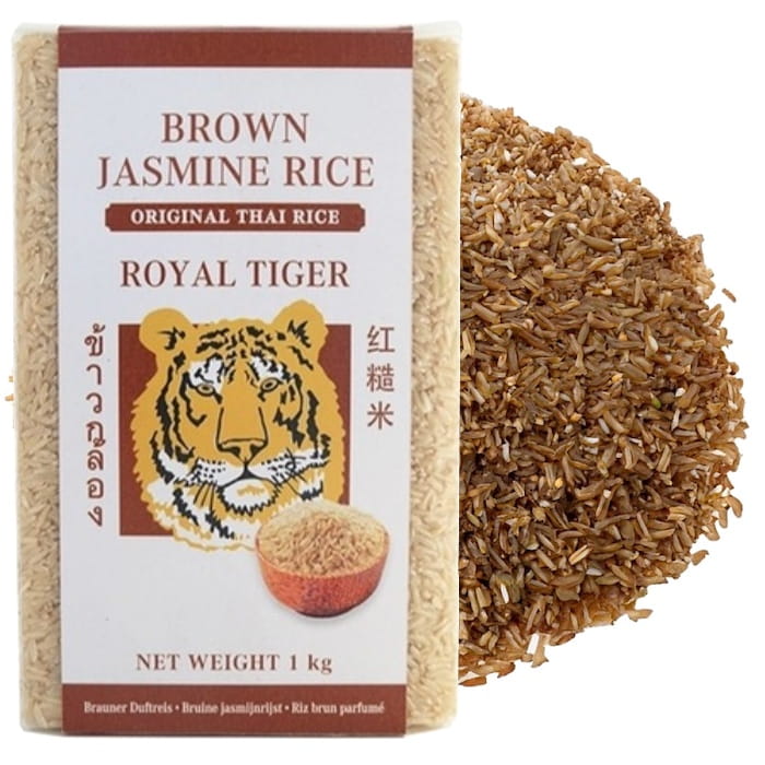 Opis: Ryż brązowy zdrowyjaśminowy w opakowaniu 1kg firmy Royal Tiger. Wiele zdrowszy od popularnego białego ryżu jaśminowego. Dzięki swojej brązowej osłonce posiada więcej witamin oraz błonnika. Ryż brązowy używany głownie w kuchni tajskiej, jednak swoje zastosowanie znajduje również w pozostałych kuchniach orientalnych. Swoją nazwę oraz uznanie zyskał dzięki unikalnemu zapachowi jaśminu podczas gotowania.