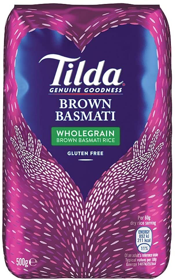Opis: Ryż brązowy basmati w opakowaniu 500g firmy Tilda to charakterystyczny długoziarnisty ryż o specyficznym smaku i aromacie. Najczęściej spożywany w Pakistanie oraz Indiach skąd oryginalnie pochodzi. Po ugotowaniu jest dość sypki i bardzo dobry. Od połowy stulecia zdajemy sobie sprawę, że ryż basmati znajduje się w centralnym miejscu na prawie każdym stole. Używamy najlepiej wyselekcjonowanych ziaren, a dzięki temu nasz ryż jest pełen naturalnych dobrych składników, długi o wyrazistej konsystencji. Zachwyca smakiem od pierwszego spróbowania.