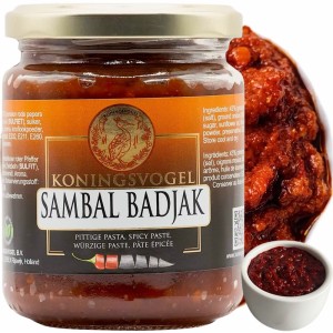 Opis: Sambal badjak to ostry sos z papryczek chili w słoiku 280g. Znacznie ostrzejszy od odmiany brandal i oelek. W składzie zawiera również czosnek oraz przyprawy. Idealny do potraw z woka oraz jako dip, czy element farszu.