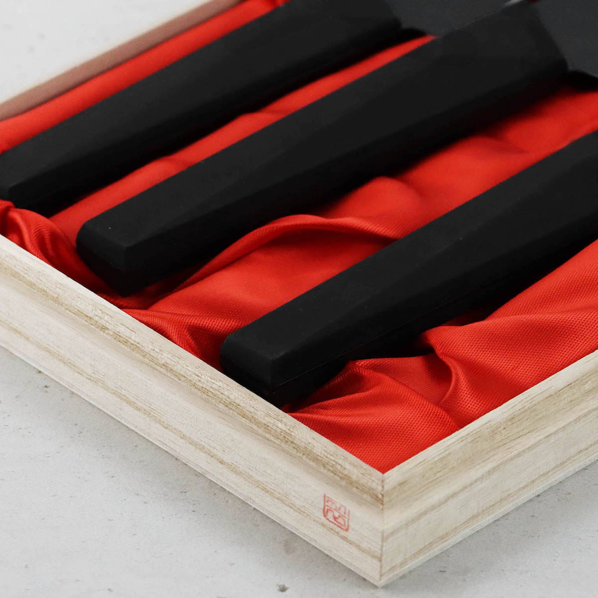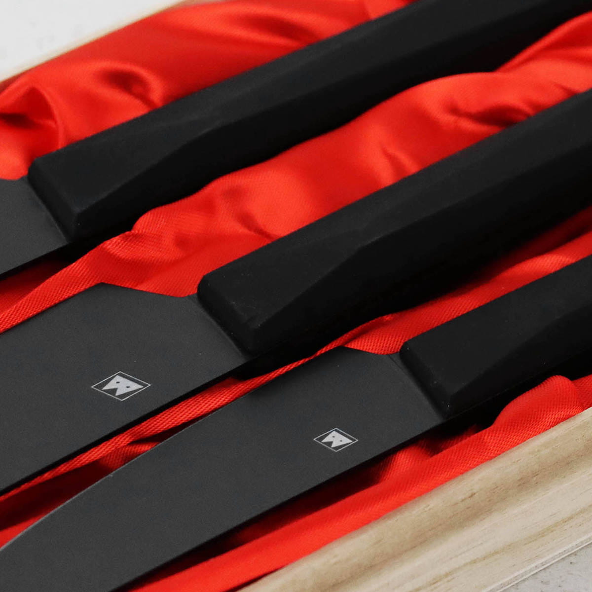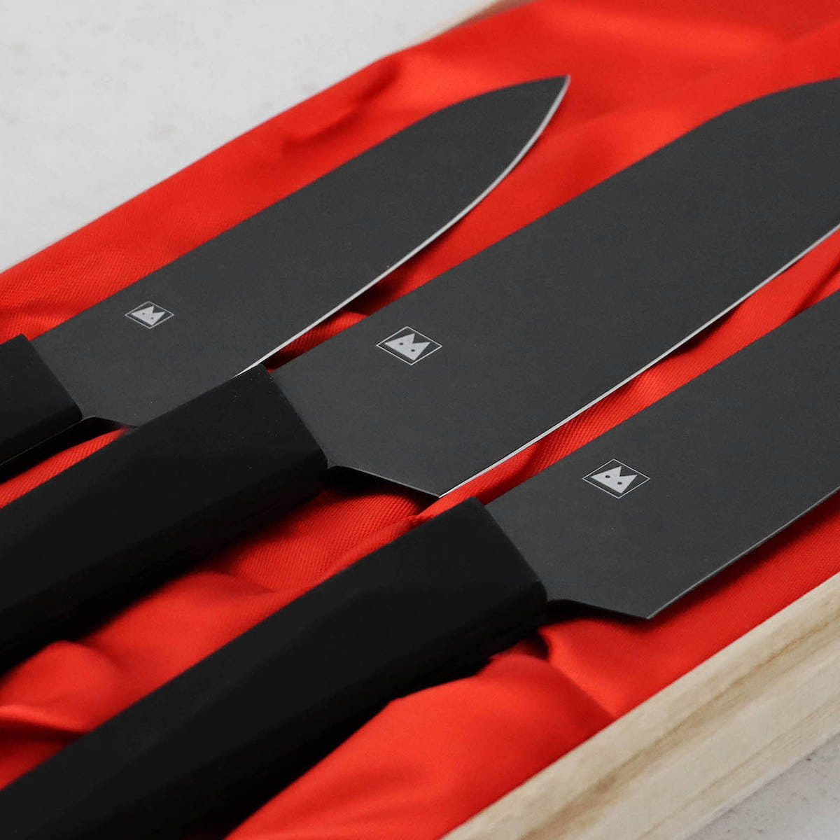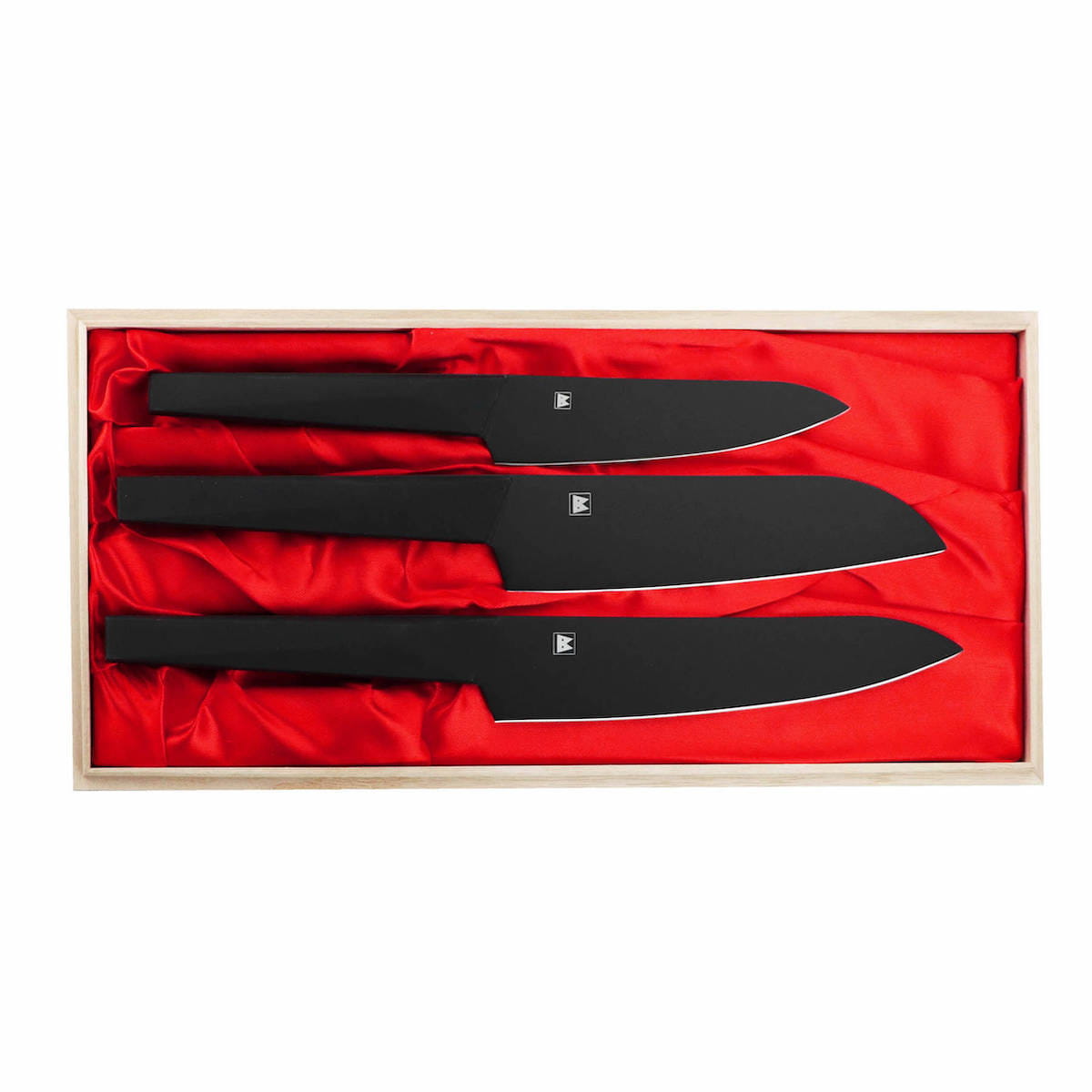 Zestaw stanowi kompletne i eleganckie narzędzie kuchenne, zapewniając profesjonalne, ostre i wygodne krojenie różnorodnych składników oraz estetyczną formę prezentową.