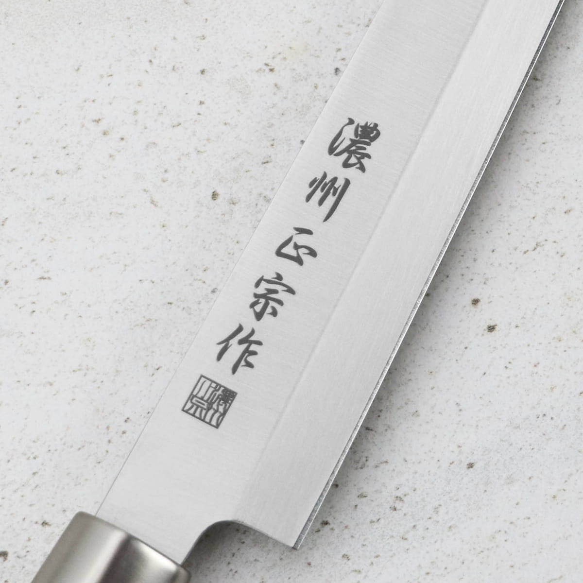 Profesjonalny japoński nóż kuchenny, przeznaczony do precyzyjnego filetowania ryb oraz przygotowywania sashimi i sushi. Długie, wąskie ostrze o długości 20,5 cm wykonane jest z wysokiej jakości stali nierdzewnej, zapewniającej ostrą krawędź cięcia i precyzję pracy. Ergonomiczna rękojeść gwarantuje komfort i pewny chwyt, umożliwiając dokładne cięcie cienkich plasterków ryby.