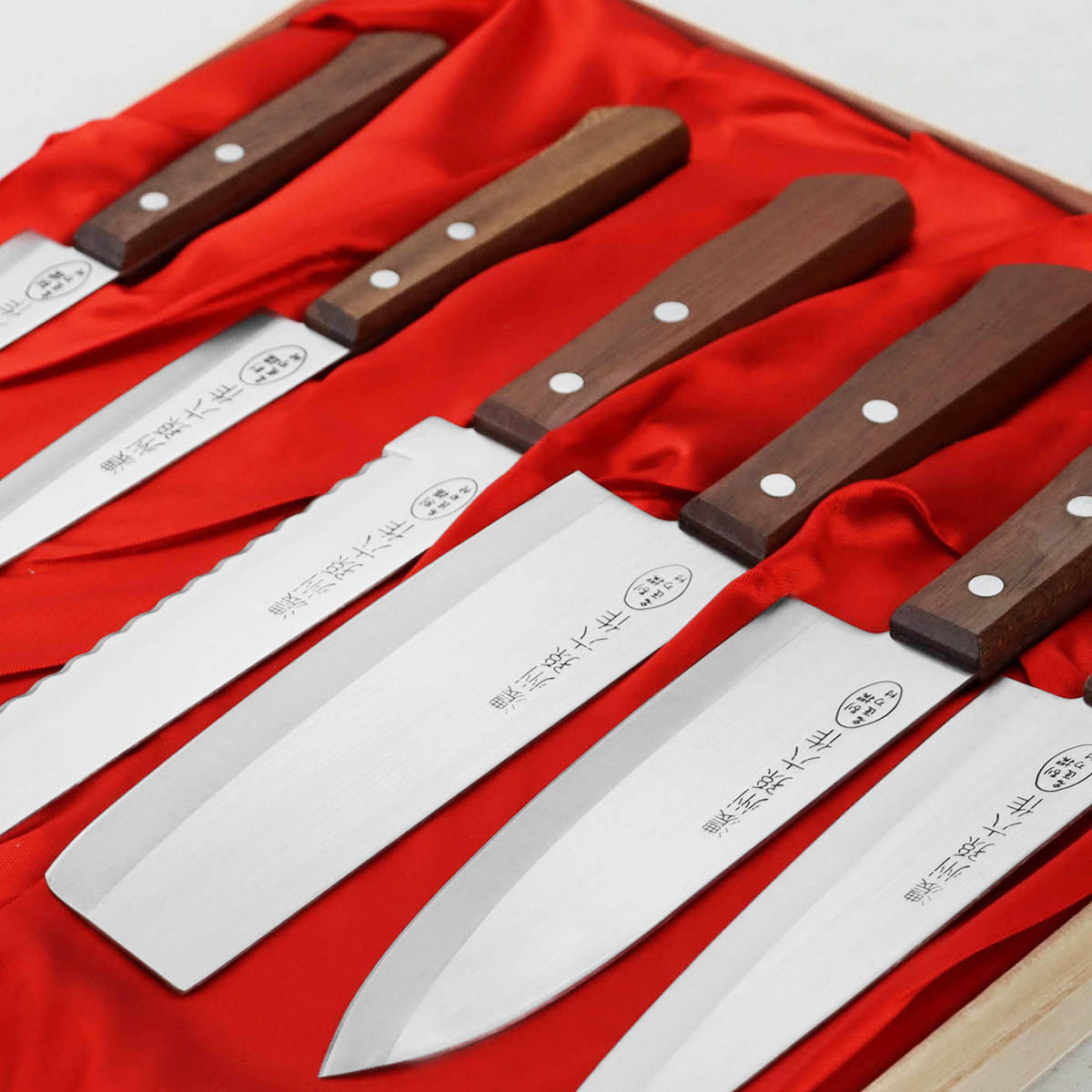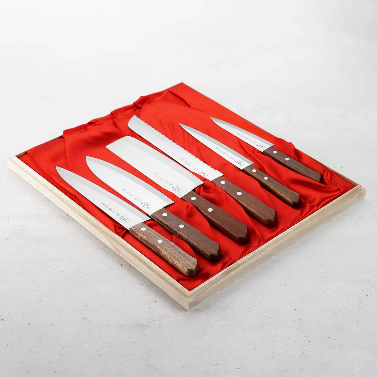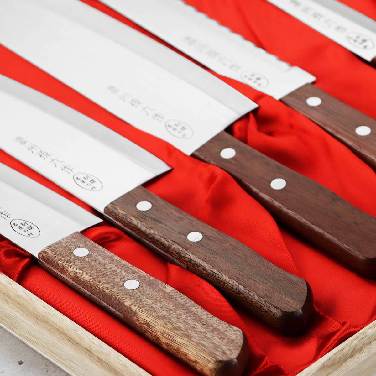 Satake Tomoko 420J2 Japoński Zestaw 6 Noży Na Prezent w Drewnianym Pudełku