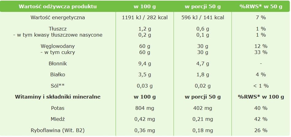 - idealne do musli, deserów, wypieków i dań kuchni zdrowej