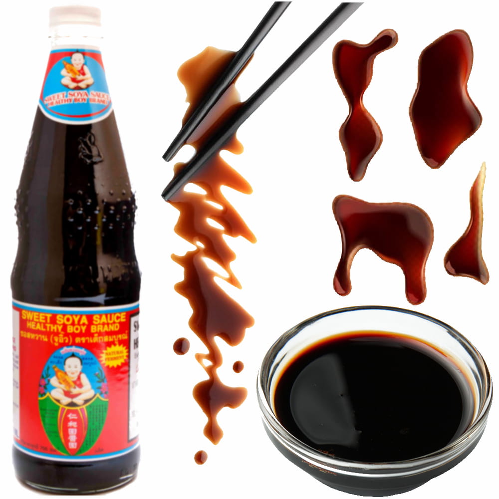 Opis: Słodki sos sojowy w butelce o pojemności 700ml tajskiej firmy healthy boy band. Bardzo popularny w kuchni tajskiej, składnik wielu marynat oraz dipów. Wykorzystywany również do dań przygotowywanych w woku.