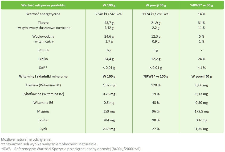- idealne do przekąsek, sałatek, musli, pieczywa i dań zdrowej kuchni