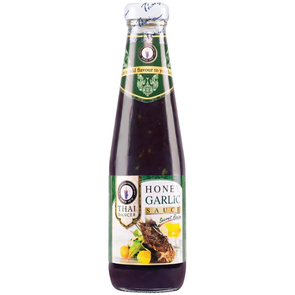 Opis: Sos czosnkowo miodowy w butelce o pojemności 300ml tajskiej firmy Thai Dancer. Idealny do dań kuchni tajskiej. Stosowany do potraw kuchni orientalnej jako składnik potrawy smażonej na woku oraz jako dip, czy sos do polewania ryżu lub makaronu. Połączenie czosnku oraz miodu nadaje oryginalnego smaku, który wyróżnia sos swoim nietypowym smakiem.
