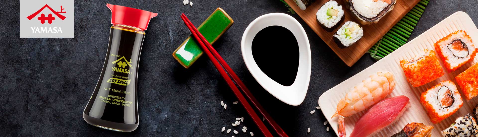 Ciesz się autentycznym smakiem sushi z sosem sojowym YAMASA, niezastąpionym dodatkiem do każdego japońskiego posiłku!