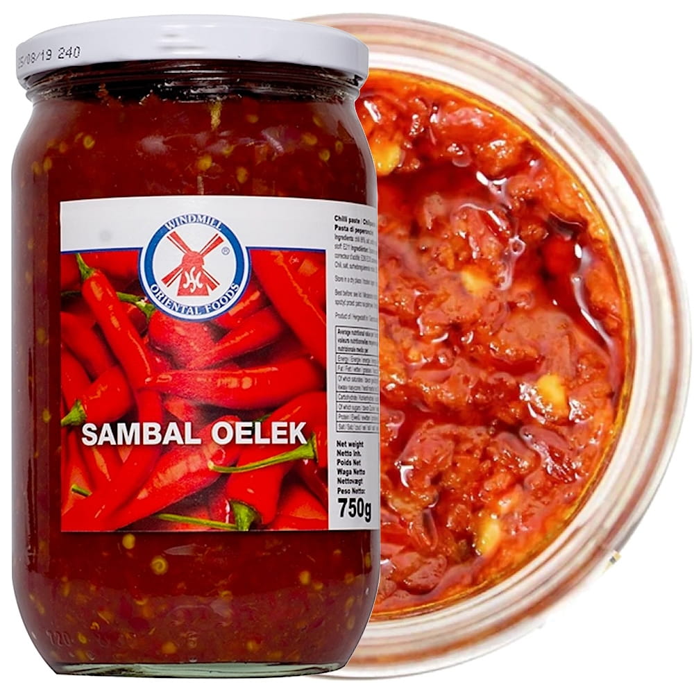 Opis: Sambal oelek to gęsty sos ze świeżych papryczek chili w słoiku o pojemności 750g firmy Windmill. Doskonały produkt dla wielbicieli wyrazistych - ostrych smaków. Stosowany do wielu marynat, mięs, warzyw i dipów.