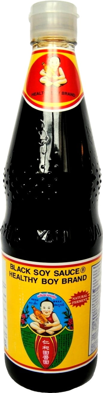 Opis: Sos sojowy ciemny formuła B w butelce 700ml firmy Healthy Boy Brand. Jak sama nazwa wskazuje jest to ciemniejsza wersja jasnego sosu sojowego. Bardziej aromatyczny, gęstszy, a także intensywniejszy w smaku. Sosy oraz dania przyprawiane ciemnym sosem sojowym stają się ciemniejsze, a marynowane mięso delikatne i smaczne. Przepisy kuchni tajskiej oraz kuchni chińskiej bardzo często bazują właśnie na ciemnej odmianie sosu sojowego. Sos jakości premium naturalnie warzony.