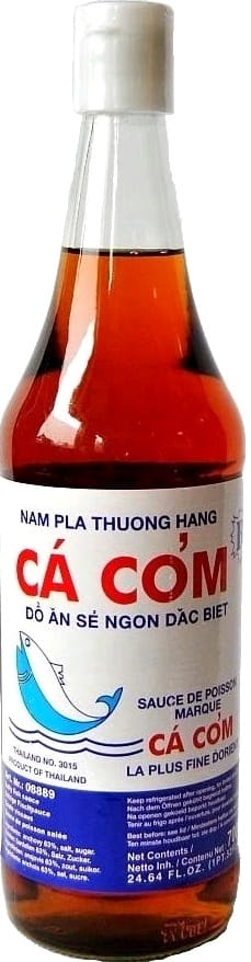 Opis: Sos rybny, czyli ekstrakt z anchois w butelce o pojemności 700ml tajskiej firmy ca com. W kuchni tajskiej i wietnamskiej jest częstym gościem. Bardzo słony, doskonale podkreśla smak zup i sosów.