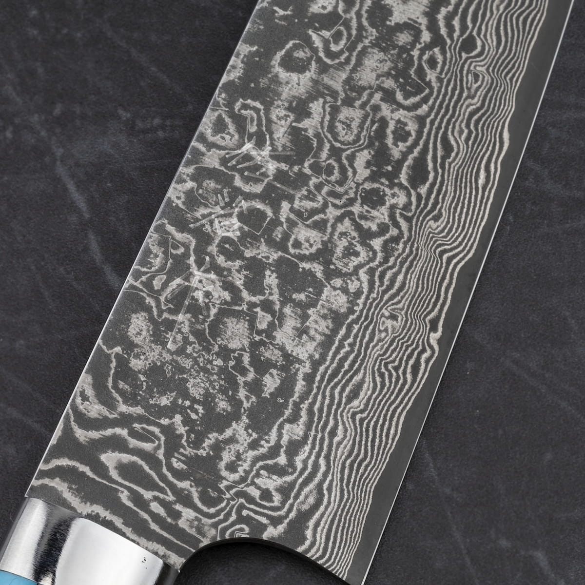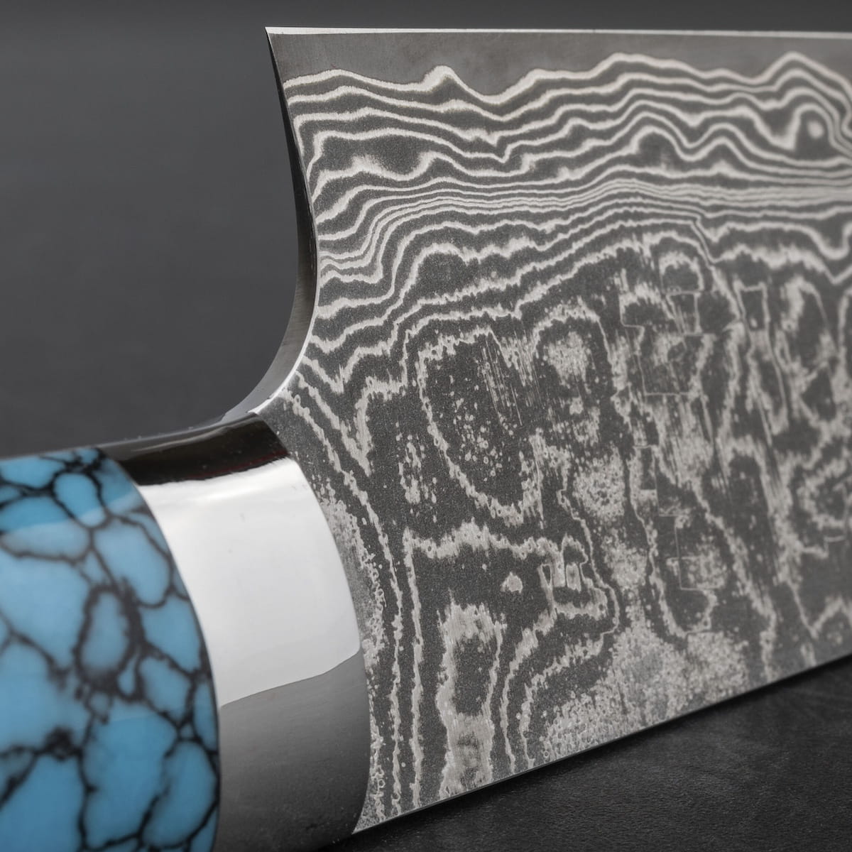 Rękojeść – niebieski turkus ze stalowym bolsterem wykończonym na wysoki połysk