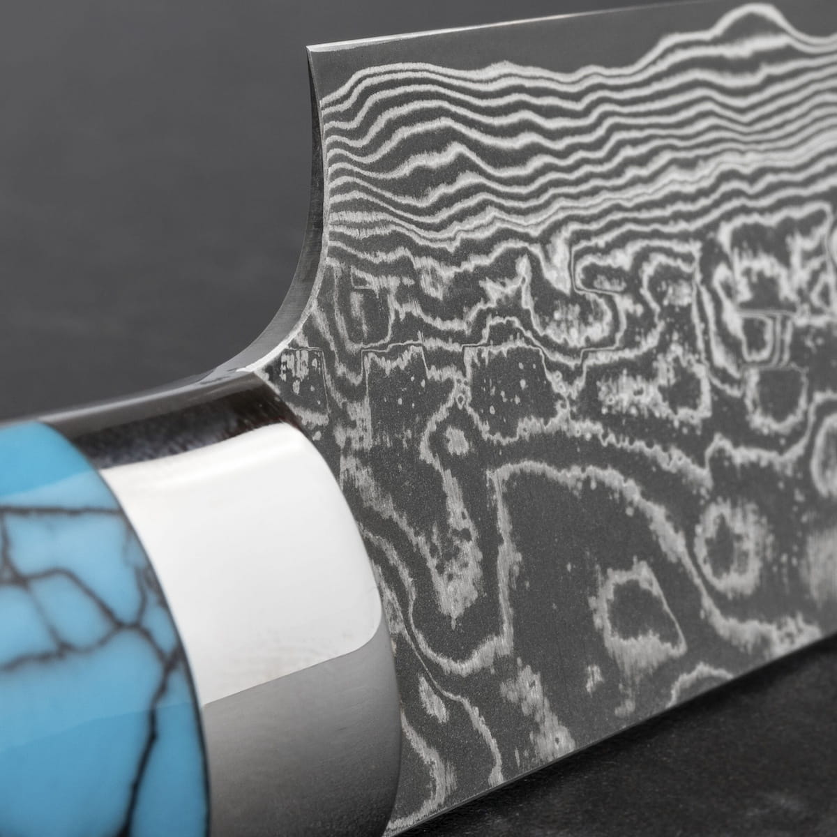Rękojeść – niebieski turkus ze stalowym bolsterem wykończonym na wysoki połysk