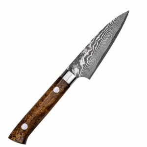 Precyzyjny nóż japoński, ręcznie kuty przez mistrza Takeshi Saji, przeznaczony do obierania i drobnych prac kuchennych. Ostrze o długości 9 cm wykonane jest z wysokiej jakości stali VG-10, charakteryzującej się twardością i długotrwałą ostrością. Rękojeść została zaprojektowana z myślą o wygodnym i stabilnym chwycie, co pozwala na precyzyjną pracę nawet przy wymagających zadaniach.