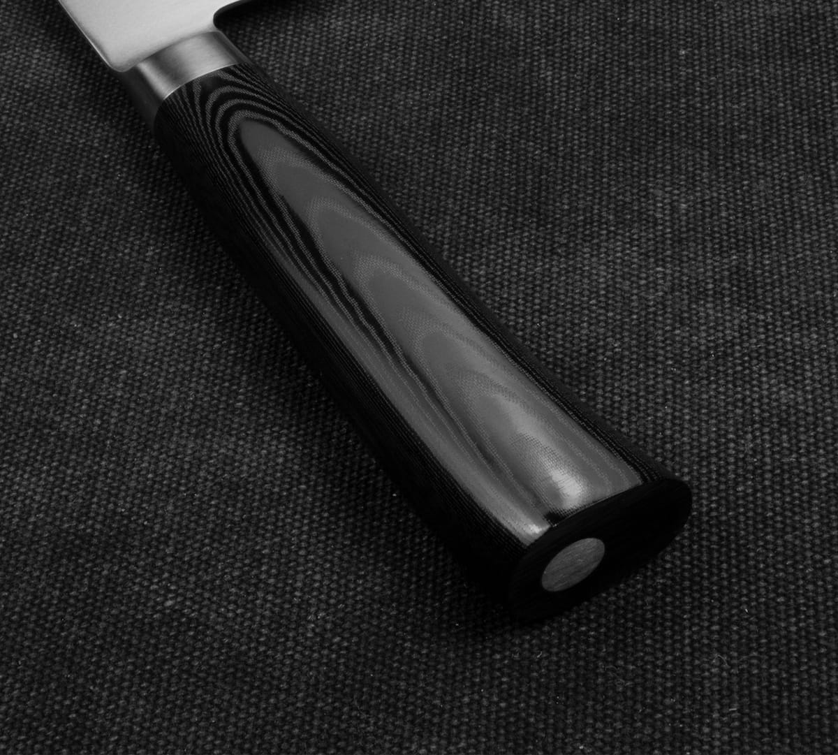 Opis: Funkcjonalny nóż kuchenny, przeznaczony do krojenia i siekania różnych rodzajów warzyw. Szerokość japońskiego noża Nakiri pozwala kroić duże produkty płynnym ruchem i szybko je przenosić do salaterki lub na patelnię. Cienka, prostokątna klinga jest szczególnie przydatna przy krojeniu twardych warzyw, jak marchewka czy rzodkiew japońska, w długie plastry.