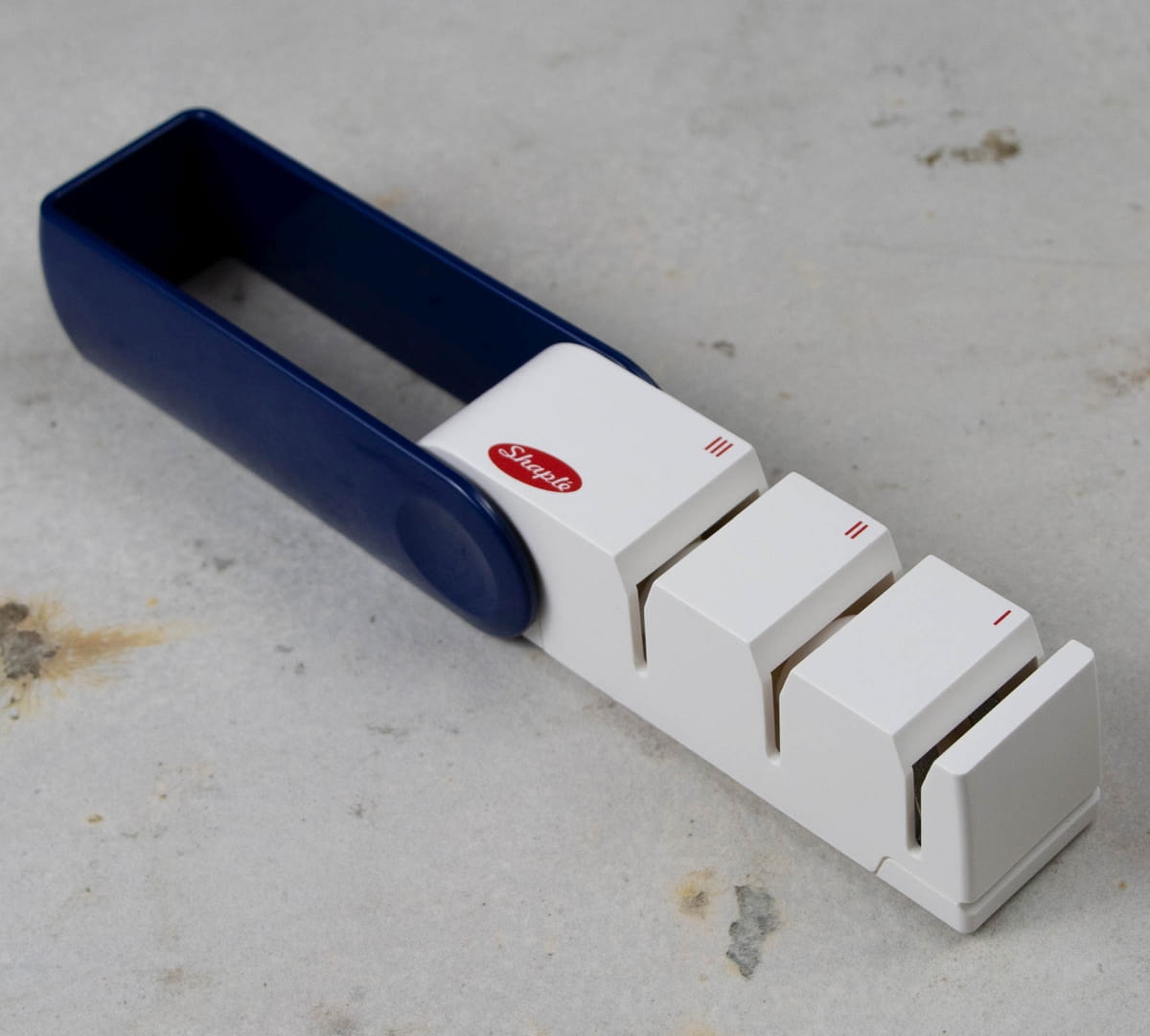 Opis: Trójfazowa ostrzałka ceramiczna, polecana dla wszystkich rodzajów noży, z wyjątkiem tych o szlifach jednostronnych, np. tradycyjnych noży japońskich. Fabrycznie ustawione otwory ułatwiają naostrzenie noża pod odpowiednim kątem. Ponieważ rowek, w który wkłada się nóż, nie jest ustawiony równolegle do ceramicznego koła, jego kąt wypukły umożliwia nadanie nożowi pierwotnej ostrości.
