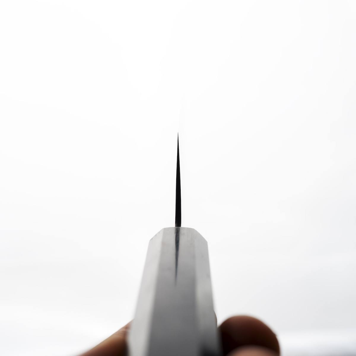Precyzyjne ostrze wykonano z wysokiej jakości nierdzewnej stali VG-10 (rdzeń), okutej stalą nierdzewną w konstrukcji 63-warstwowego damastu. Twardość na poziomie 59–60 HRC gwarantuje długie trzymanie ostrości, odporność na korozję oraz wygodne, kontrolowane ostrzenie. Dla zachowania najlepszych właściwości tnących zaleca się ostrzenie na kamieniach Shapton lub Naniwa.