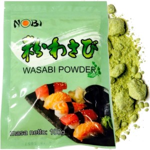 Opis: Pasta wasabi do sushi zielony chrzan japoński w proszku w opakowaniu 100g firmy NOBI.