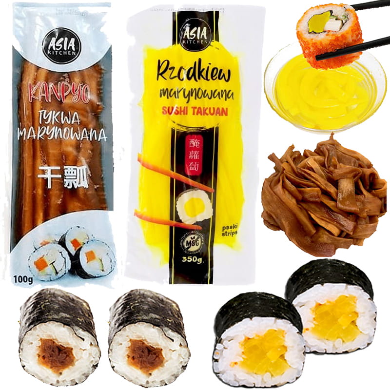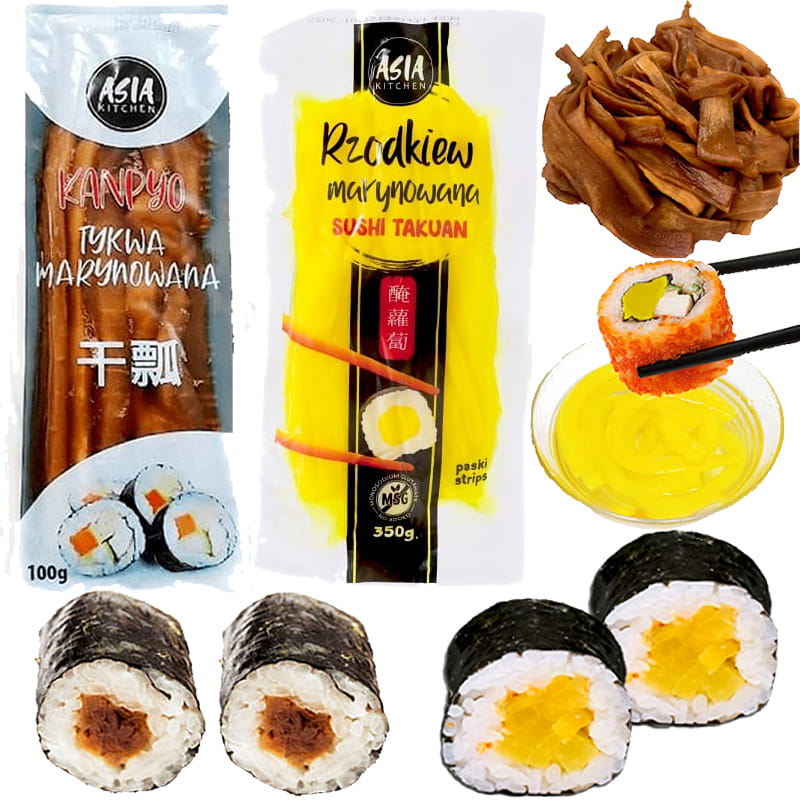 ZESTAW 2 DODATKÓW DO SUSHI Tykwa Kanpyo 100g i Rzodkiew Oshinko 350g ASIA KITCHEN