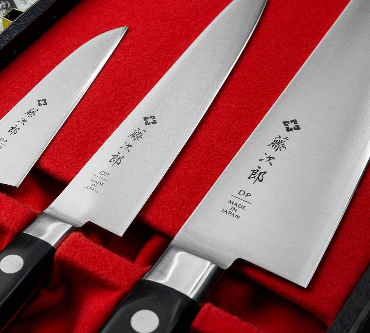 - zestaw 3 noży kuchennych Tojiro Classic – nóż do obierania 9 cm, nóż uniwersalny 15 cm i nóż szefa kuchni 21 cm