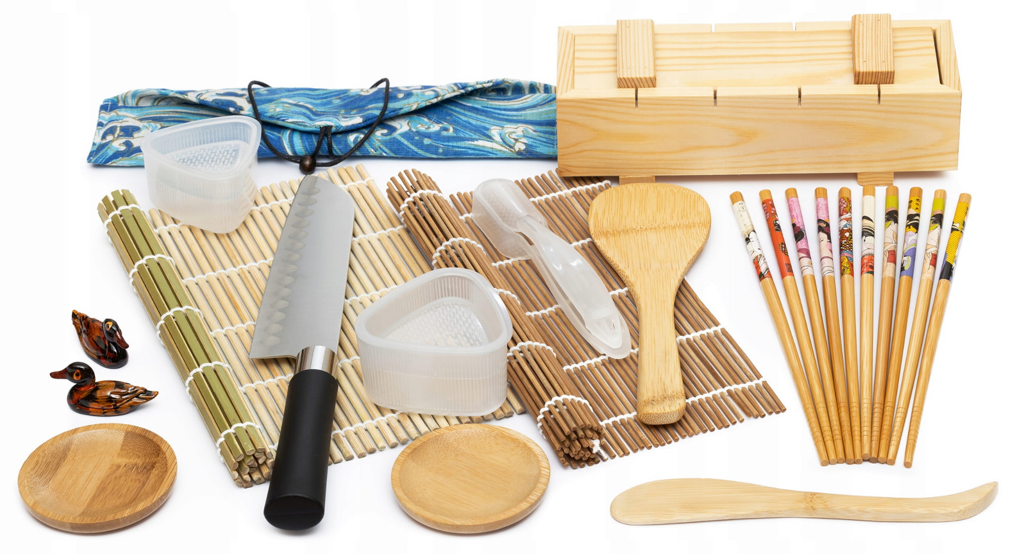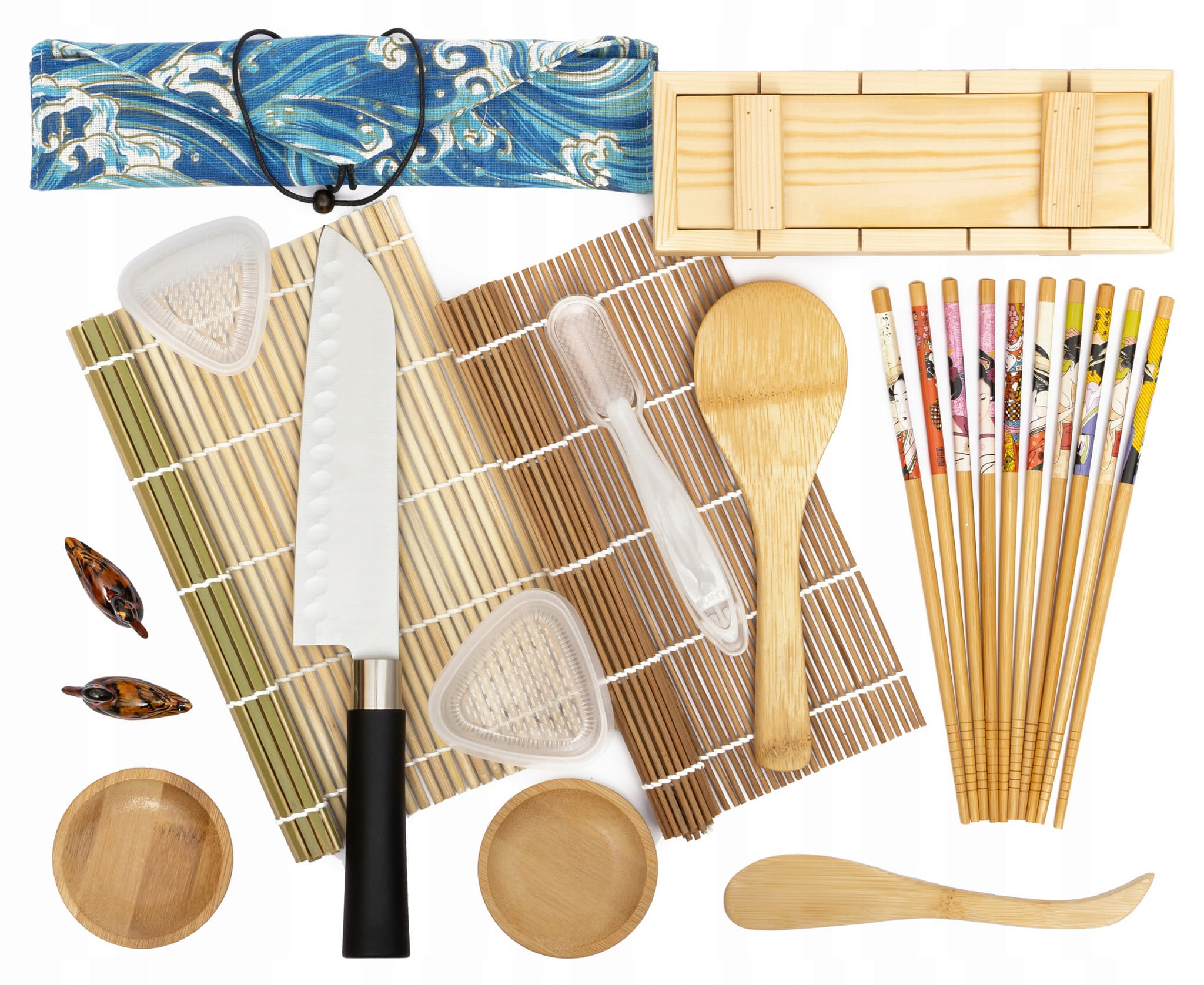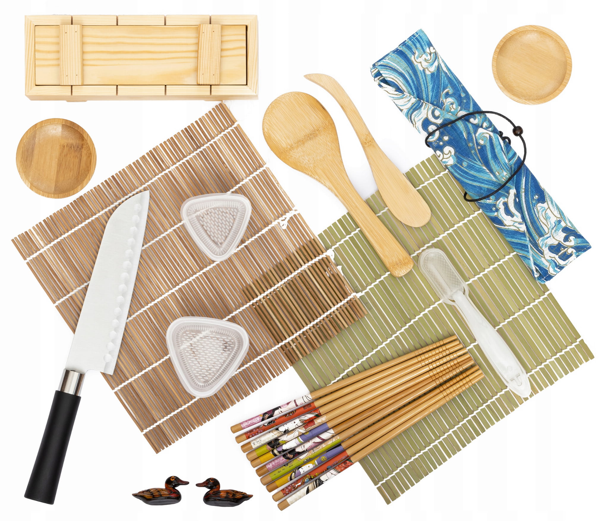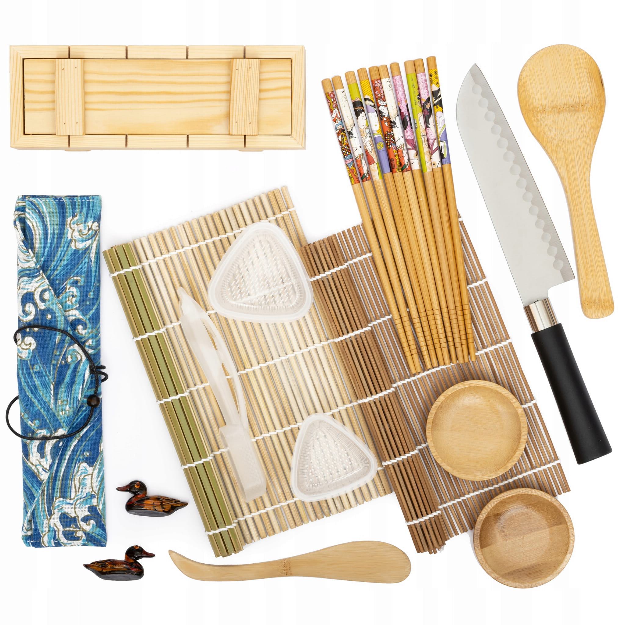 Zestaw Akcesoriów Do Robienia Sushi Mata Nóż Pałeczki Foremki Podstawki Drewniana Prasa