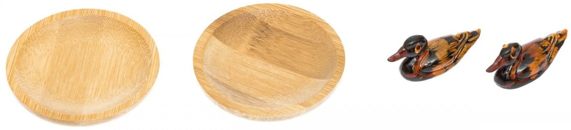 Dwie miseczki do sosów - Sushi podawaj z sosem sojowym i odrobiną wasabi do maczania oraz plastrami marynowanego imbiru (ma oczyszczać kubki smakowe między kolejnymi rodzajami sushi). Dwie kaczuszki - służą jako podstawki pod pałeczki.