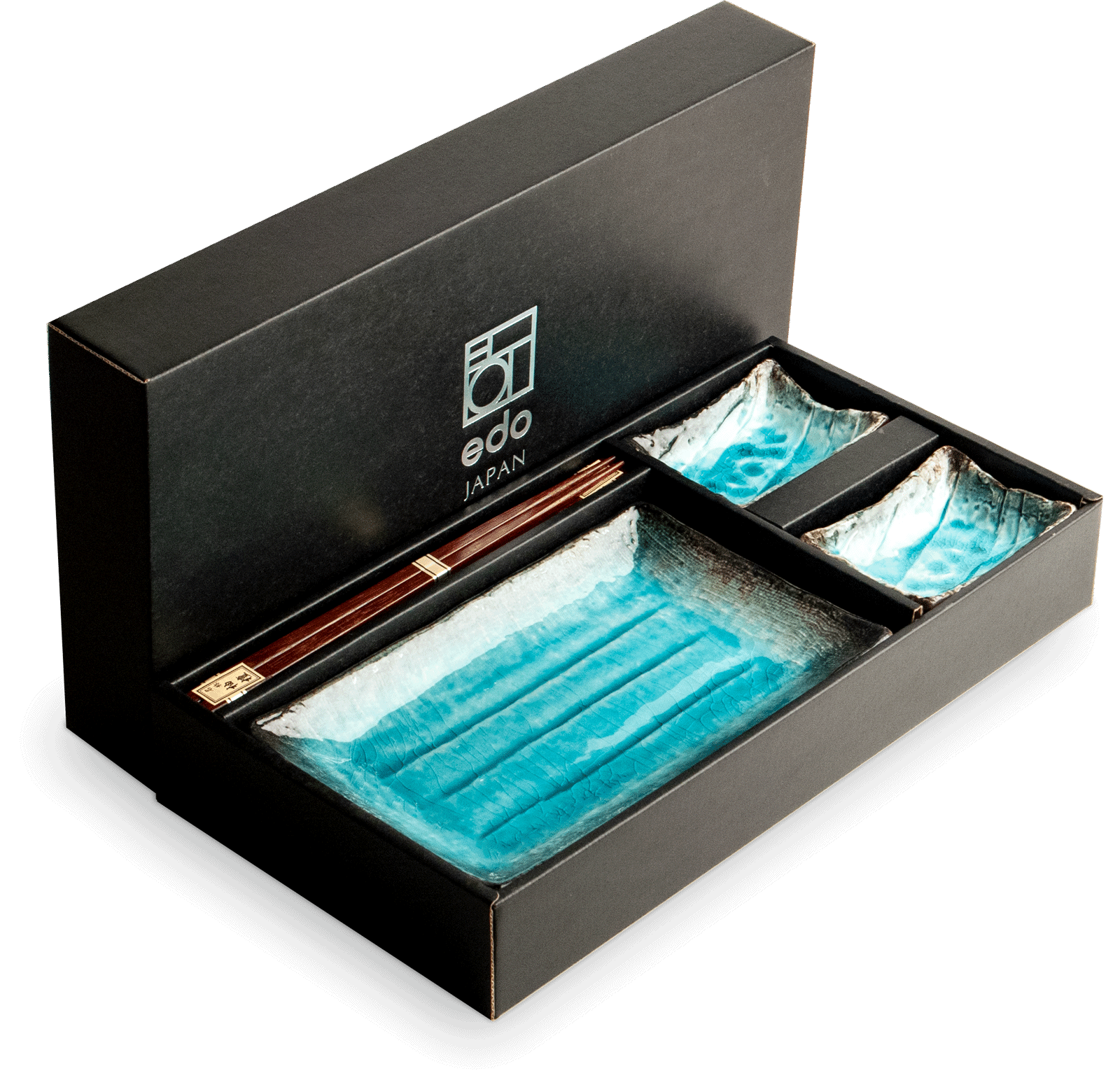 Opis: Elegancki zestaw do sushi dla dwóch osób w błękitno-lazurowej kolorystyce marki EDO JAPAN to wyjątkowy komplet ceramiki utrzymany w chłodnych, harmonijnych odcieniach błękitu nawiązujących do japońskiej symboliki wody i nieba. Delikatnie szkliwiona powierzchnia oraz subtelne przejścia kolorystyczne nadają zestawowi elegancji i lekkości.