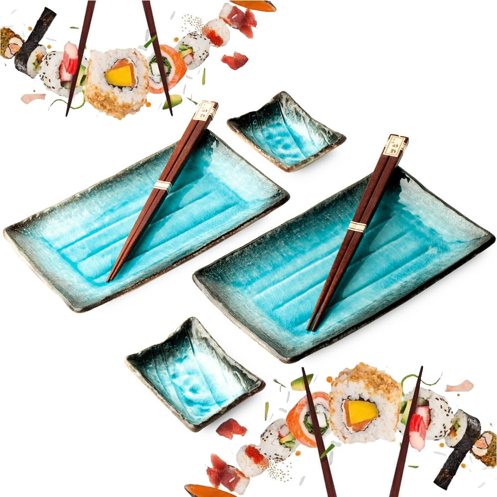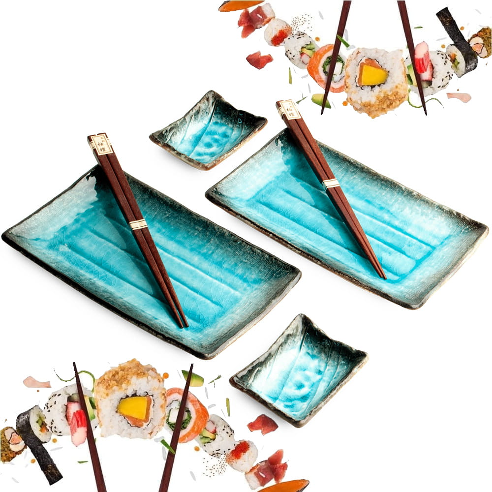Zestaw Ceramiki Do Sushi Komplet Błękitny Lazurowy Ceramika Dla 2 Osób EDO JAPAN