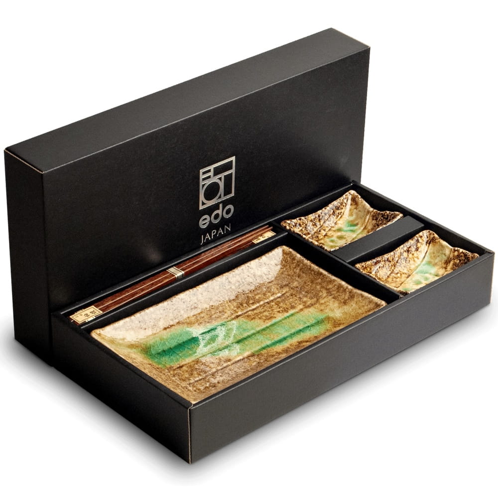 Zestaw Ceramiki Do Sushi Komplet Ki Kasshoku Brązowo-Zielony Ceramika Dla 2 Osób EDO JAPAN