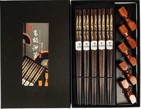 Zestaw Ciemnych Brązowych Pałeczek z Podstawką Drewnianą w Pudełku 5 Par GOLDEN TURTLE