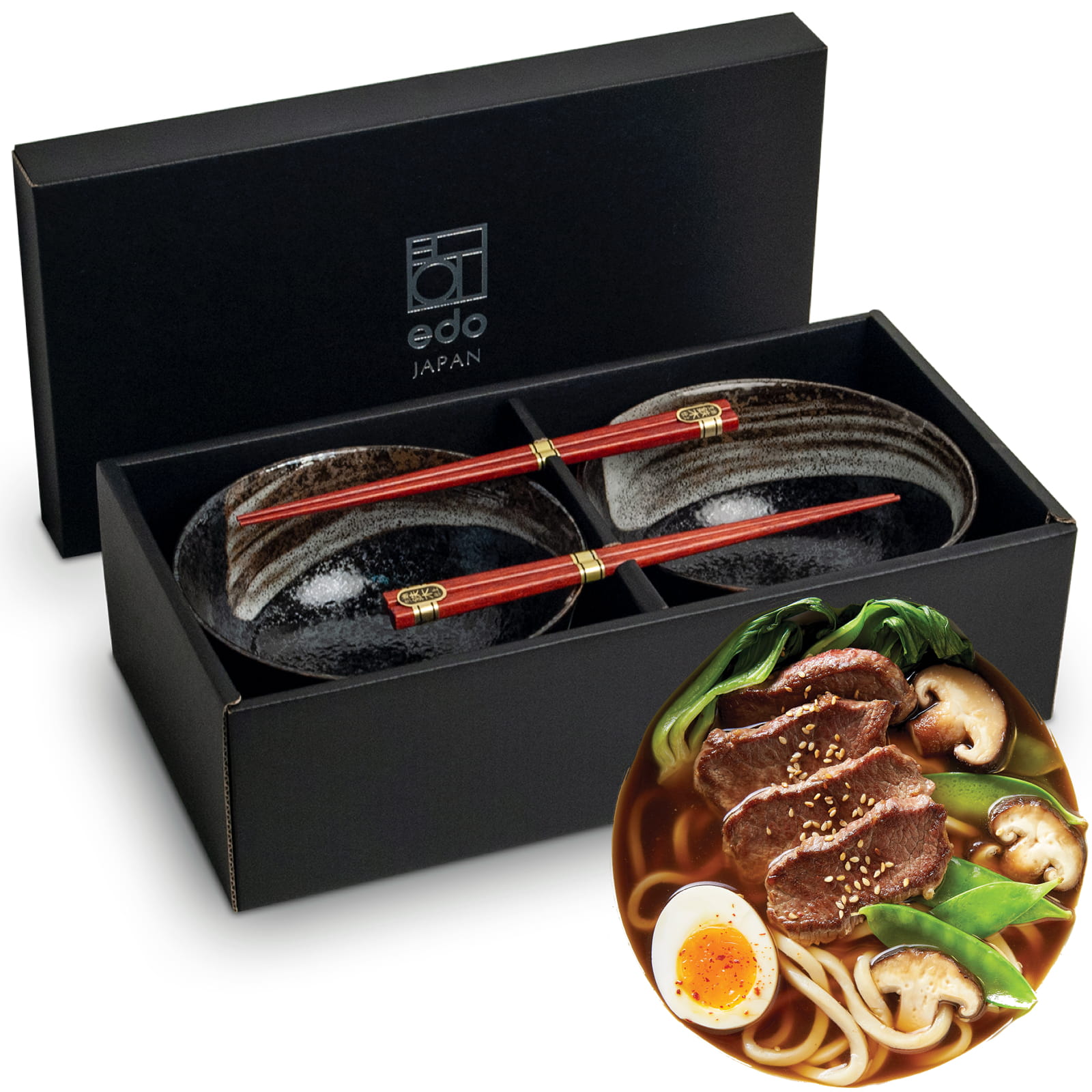 Zestaw Ciemnych Misek 17cm ANSEN Do Makaronu Zupy Udon z Pałeczkami EDO JAPAN