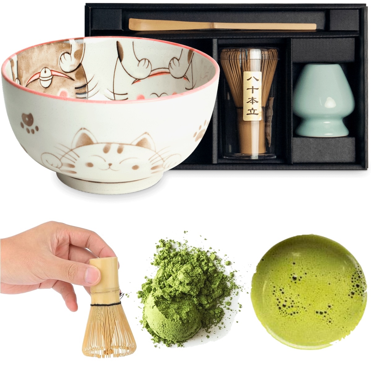 Dzięki harmonijnemu połączeniu tradycji, finezji i nowoczesnej estetyki, zestaw THREE CATS RED doskonale sprawdzi się zarówno podczas codziennego przygotowywania matchy, jak i jako oryginalny prezent dla miłośników japońskiej kultury i ceremonii herbacianych.