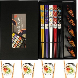 Opis: Zestaw kolorowych eleganckich bambusowych pałeczek z podstawką z motywem kaczki. Komplet zapakowany jest w eleganckie pudełko idealnie nadające się na prezent. W opakowaniu znajdują się 5 par lakierowanych drewnianych bambusowych pałeczek o długości około 23m. Pałeczki zdecydowanie urozmaicą spożywanie orientalnych potraw, idealnie nadają się na prezent dla bliskiej osoby.