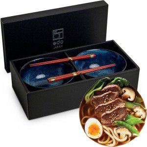 Zestaw Niebieskich Misek 17cm Do Makaronu Zupy Udon z Pałeczkami IZAYOI EDO JAPAN