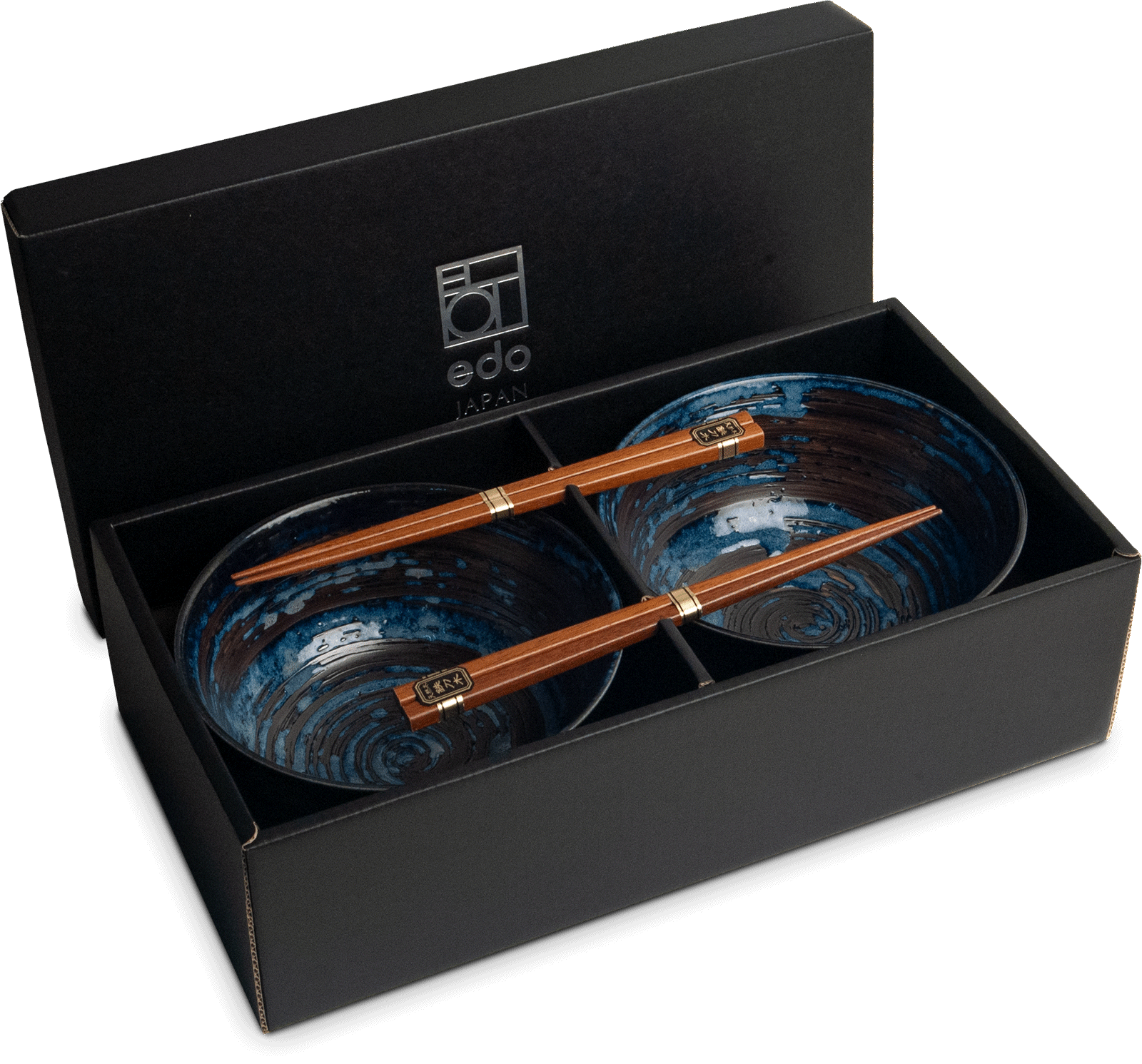 Zestaw Niebieskich Misek 17cm Do Makaronu Zupy Udon z Pałeczkami UZU EDO JAPAN