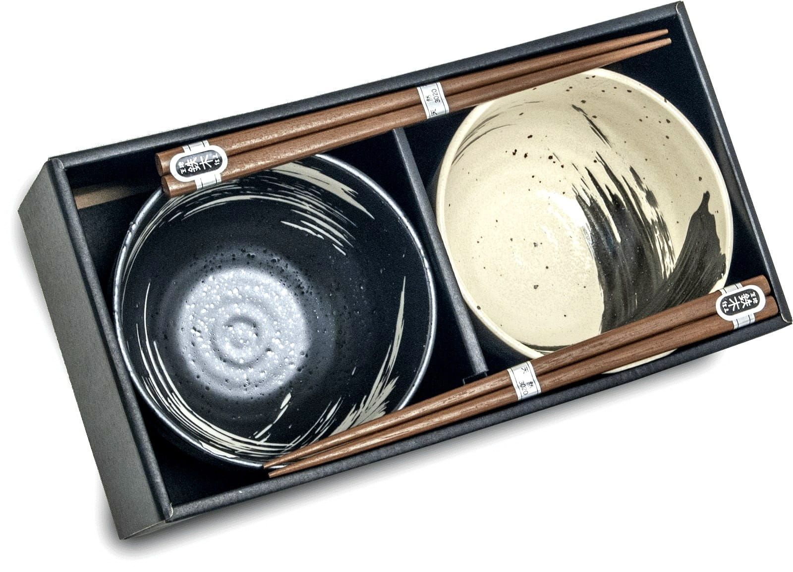 Zestaw Orientalnych Misek 13cm z Pałeczkami Czarno Białe Do Zupy EDO JAPAN