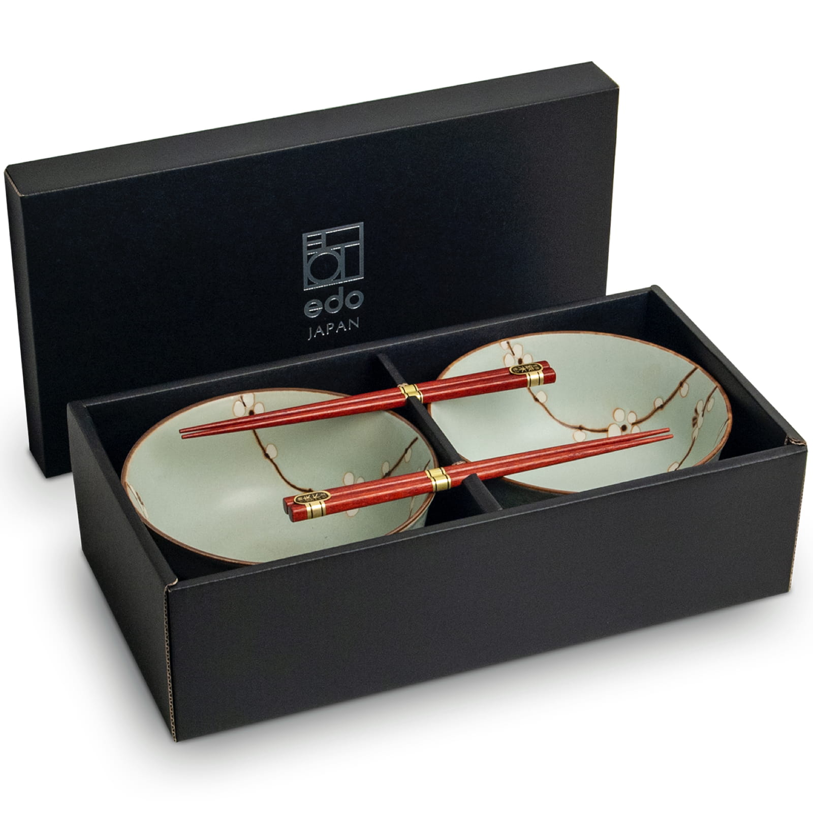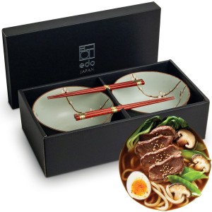 Opis: Zestaw bardzo ładnych orientalnych misek do zupy udon z pałeczkami w jasno zielonym kolorze z białymi kwiatami. Miski idealnie nadają się również do spożywania innych azjatyckich potraw jakich jak: zupy, makarony, ryż, oraz pyszne desery. Super pomysł na prezent dla bliskiej osoby :)