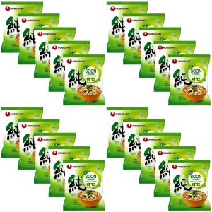 Opis: Zupka Soon Veggie Ramyun to tradycyjna koreańska zupa instant w opakowaniu 20x112g firmy NongShim. Produkowana przez firmę Nong Shim od 1986 roku. Sprzedawana w ponad 80 krajach świata, co czyni producenta liderem sprzedaży makaronów i zupek w Korei. W opakowaniu znajdziemy: woreczek z przyprawami, suszone warzywa oraz makaron. Do zupy błyskawicznej Soon Veggie Ramyun można dodać wiele własnych składników takich jak: sos sojowy, świeże warzywa, pierogi, jaja. Produkt z certyfikatem HALAL, czyli nie posiada żadnego mięsa w sobie. Idealna dla wielbicieli ostrego smaku oraz wegetarian.
