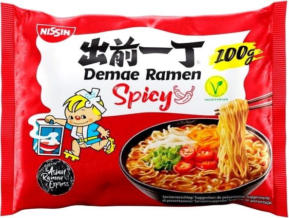 Opis: Makaron błyskawiczny demae ramen o ostrym smaku i gramaturze 100g firmy Nissin. To połączenie japońskiego makaronu, aromatycznych przypraw oraz aromatu chili. Pożywne danie wzbogacone o orientalne przyprawy, doskonałe kiedy nie masz czasu na przygotowanie posiłku.