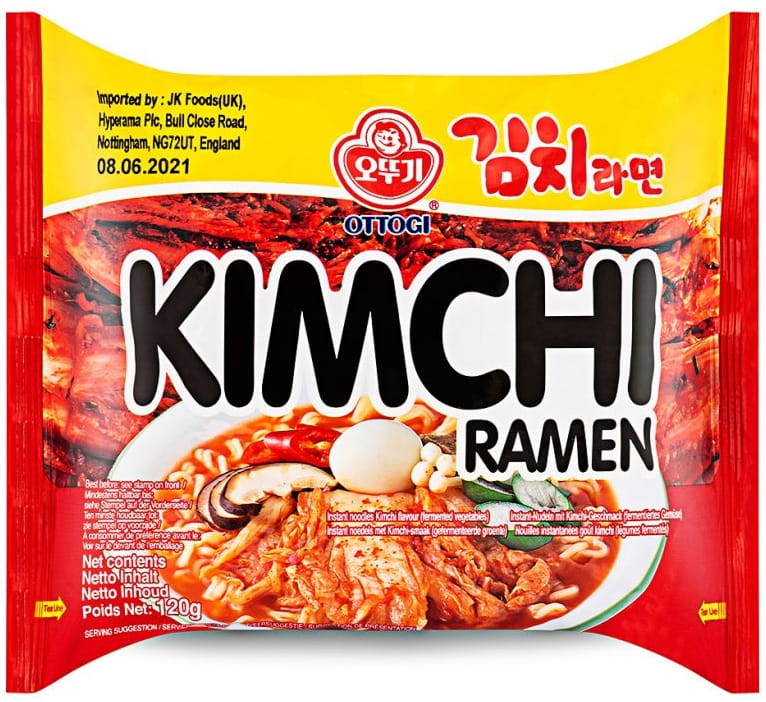 Opis: Koreańska zupka makaron ramen Kimchi w opakowaniu 120g wyprodukowana przez firmę Ottogi. Pikantna zupka z makaronem pszennym, suszonymi warzywami oraz przyprawami kimchi. Idealna dla wielbicieli kimchi oraz koreańskich zupek błyskawicznych. Poczuj smak prawdziwej Korei z zupką Ramen Kimchi od OTTOGI – połączeniem klasycznego, sprężystego makaronu i intensywnego bulionu na bazie kultowego, fermentowanego kimchi. Ta zupka to idealna propozycja dla fanów wyrazistych, lekko kwaśnych i pikantnych smaków, które rozgrzewają i pobudzają zmysły.