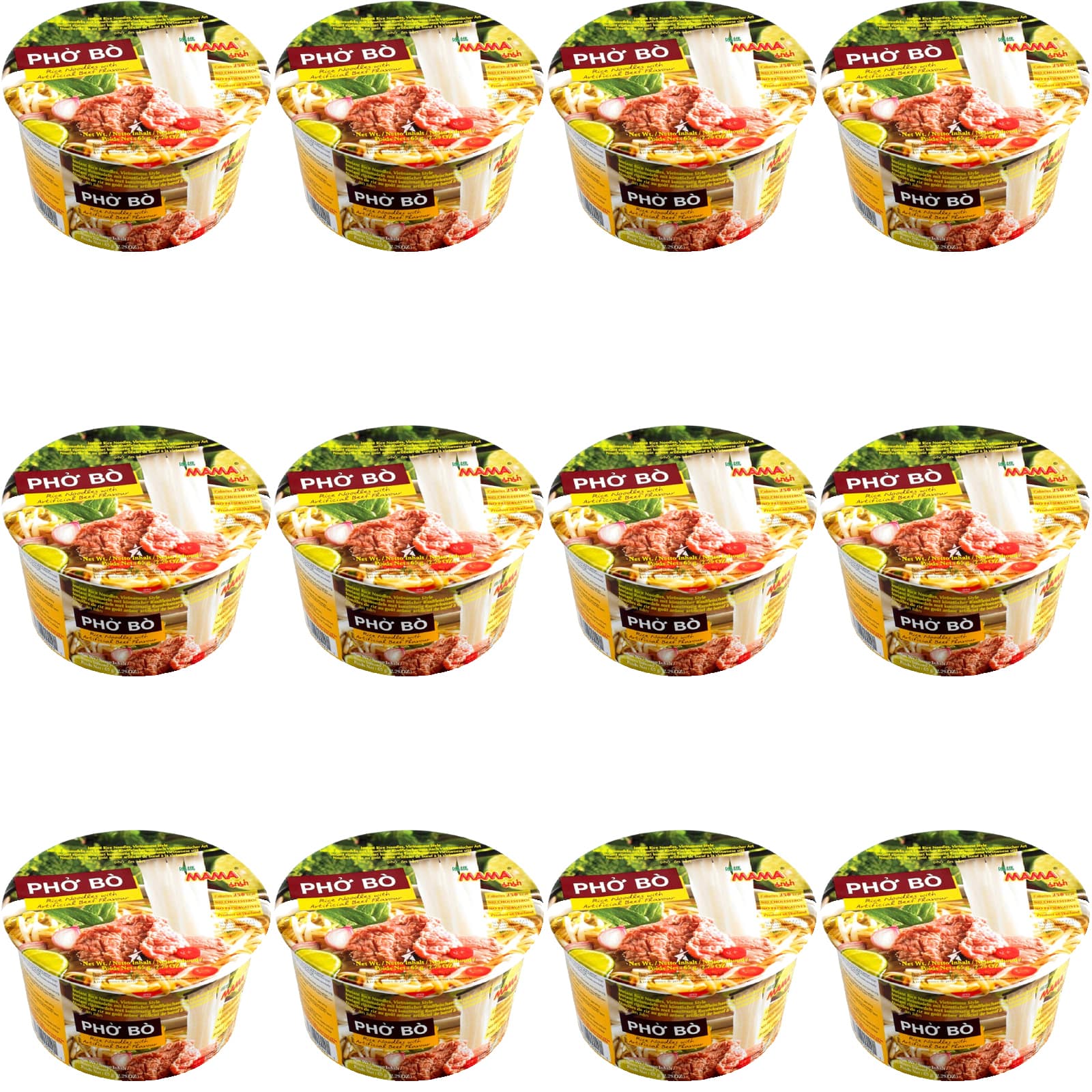 KARTON Tajska Zupka Błyskawiczna Makaron Ryżowy Instant Wołowina Pho Bo Cup 12x65g MAMA